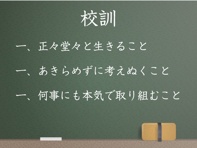 1つめは「正々堂々と生きること」です。言葉通り、うそをつかずに正直な子どもに育ってほしいという願いです。宿題を忘れたとき、正直に言うことはとても大切です。もちろん忘れたら叱ります。宿題をとおして、考える習慣を身につけるとともに真っ直ぐに生きることの大切さを学んでもらいます。